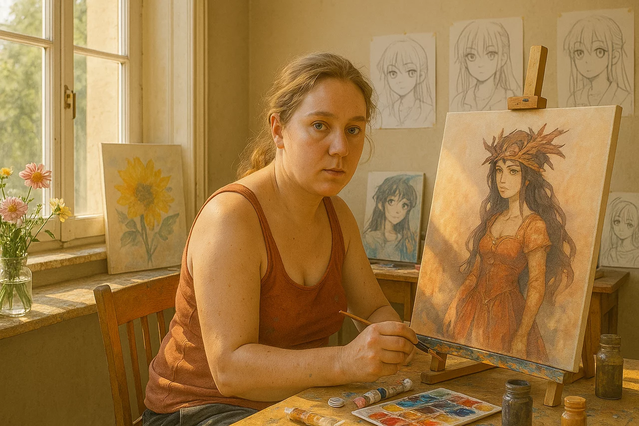 Ich greife zu Stiften, Pinseln oder dem Tablet, nicht weil jemand es verlangt – sondern weil es mich ruft. Weil mein Kopf zu voll ist von Bildern, die rauswollen. Weil meine Hände manchmal schneller sind als meine Worte. Weil Kunst mir erlaubt, laut zu sein, ohne zu schreien – und leise zu sein, ohne zu verschwinden.